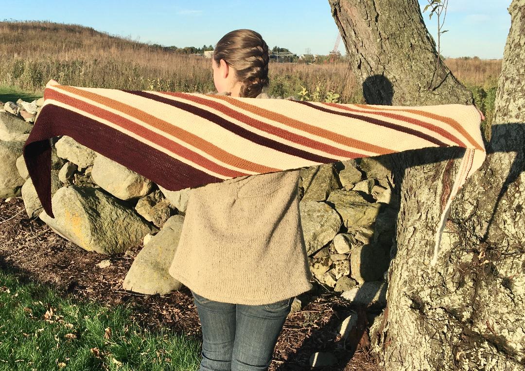 This DK weight shawl was designed with the rich colors of Autumn and is a cozy piece to wear on chilly days. Locally sourced wool that was milled and dyed in the central Wisconsin area gives this shawl a unique story.