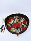 This handmade drawstring makeup bag is both edgy and practical, featuring bold, vibrant Day of the Dead-inspired designs with intricate skulls, roses, and a pop of color. The spacious interior is perfect for storing all your beauty essentials, and the drawstring closure ensures easy access while keeping everything secure. It opens up flat, giving you a clear view of your makeup, and folds back into a compact bag for on-the-go convenience.