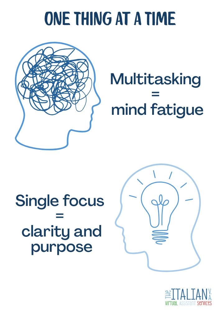 A gentle reminder that multitasking muddles the mind. This poster encourages calm, focused work, one task at a time.