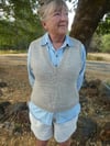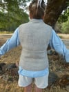 The tank is worked top down. The top of the back is knit first, then the two fronts, before joining together and working the body in the round. The neck and armholes edges are worked in rib to complete the garment.