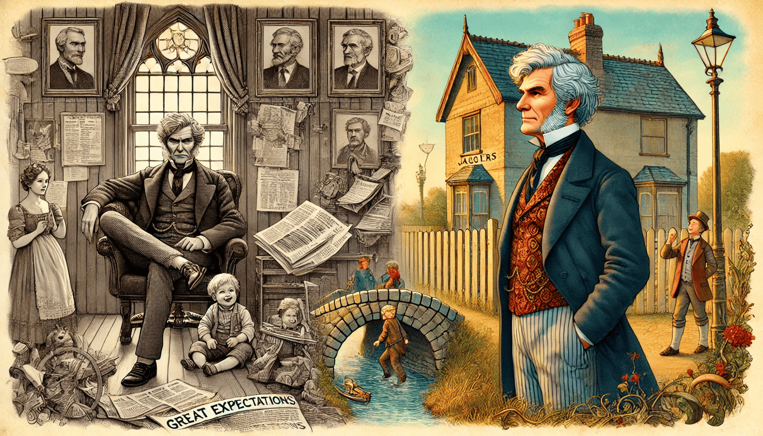 A beautifully detailed illustration inspired by Great Expectations, capturing Wemmick’s dual life—his professional seriousness in London and his warm, whimsical personality at home. This artwork blends vintage charm and literary nostalgia, making it a must-have for Dickens enthusiasts and lovers of historical aesthetics.