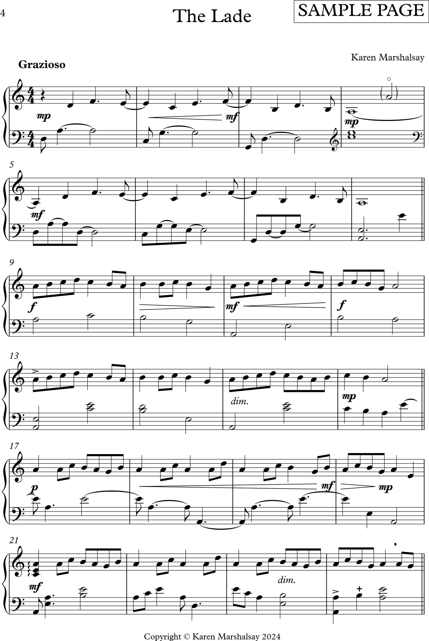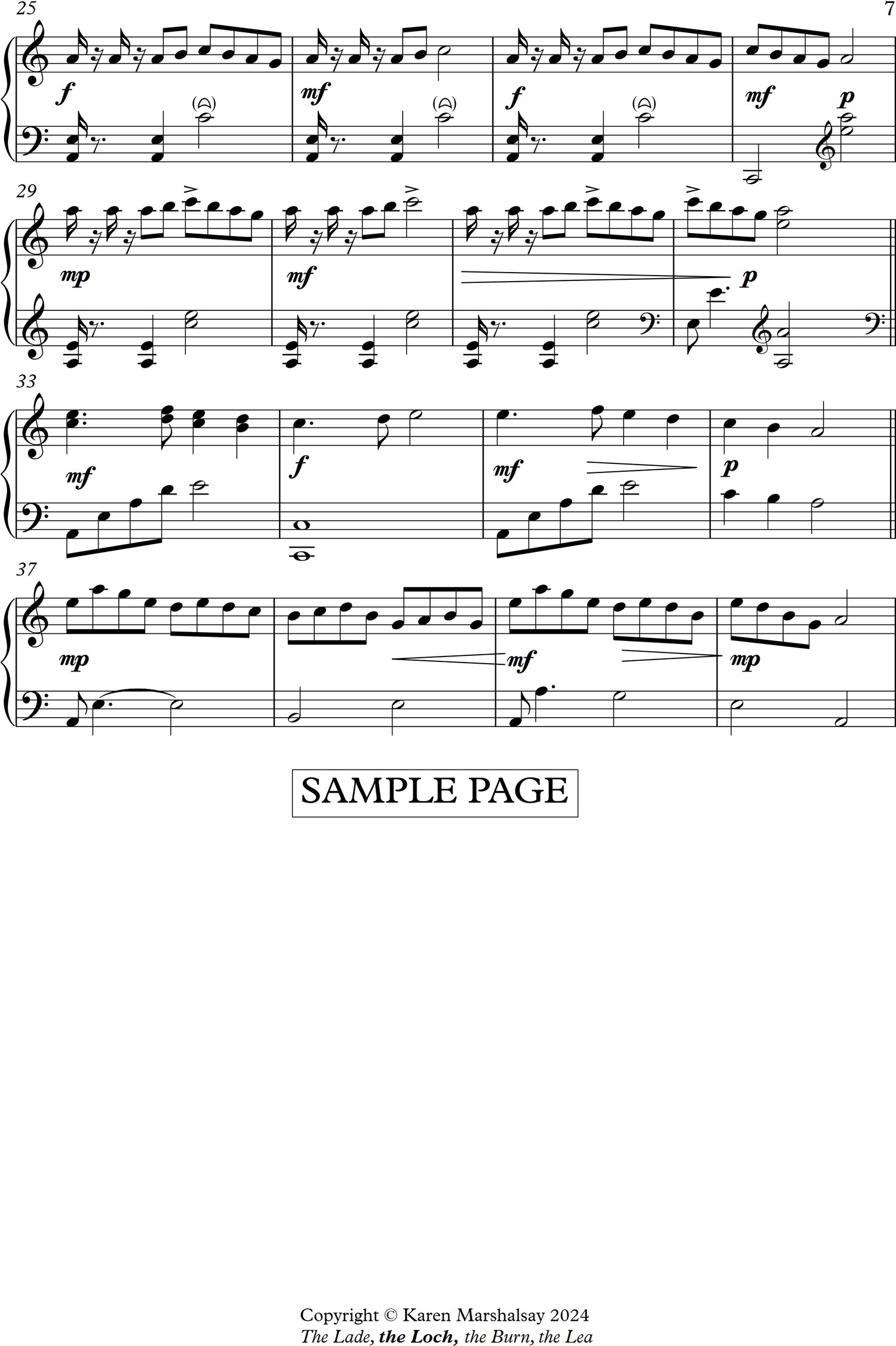 "Each of the four works is a charming Scottish idyllic landscape; technically not too hard to tackle, and with very little lever changes, the rhythmic interest is in the lilt of the groove and cross rhythms the left-hand draws around the right hand melodies." Gabriella Dal' Ollio