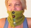 A super simple button-up cowl with six buttons. Add odd or matching buttons, depending on your style.