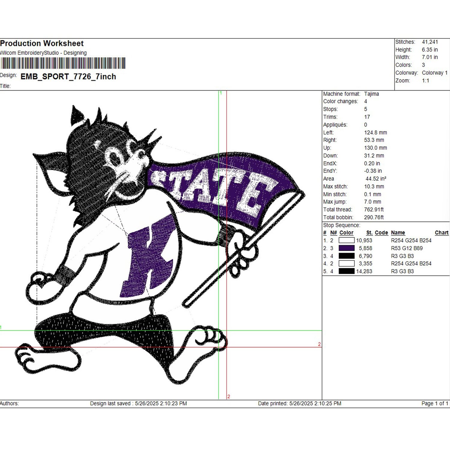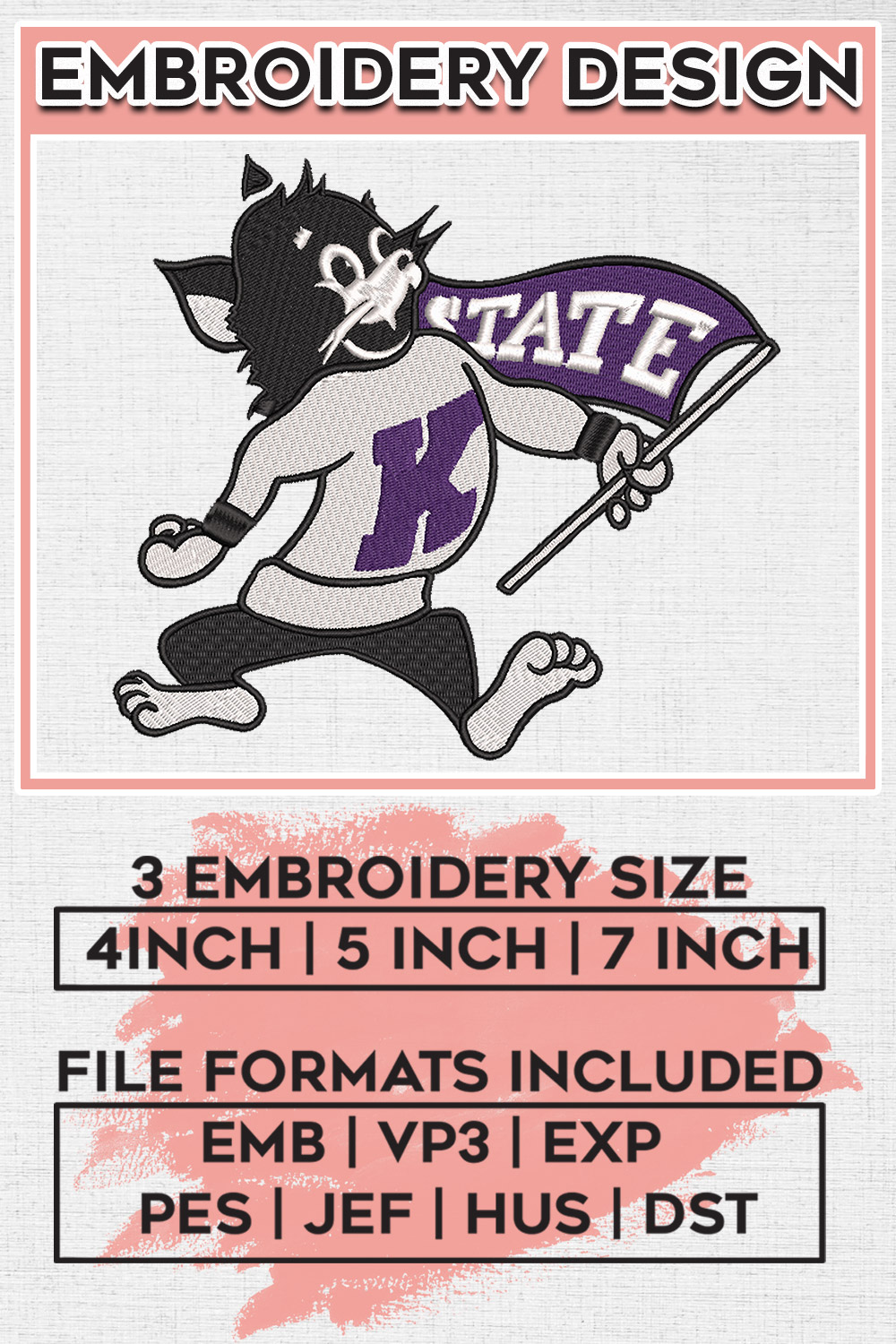 NCAA Kansas State Wildcats College Football Team Mascot Logo Embroidery Designs, NCAA Kansas State Wildcats Machine Embroidery Files, NCAA Logo embroidery designs, NCAA Kansas State Logo, Digital Download