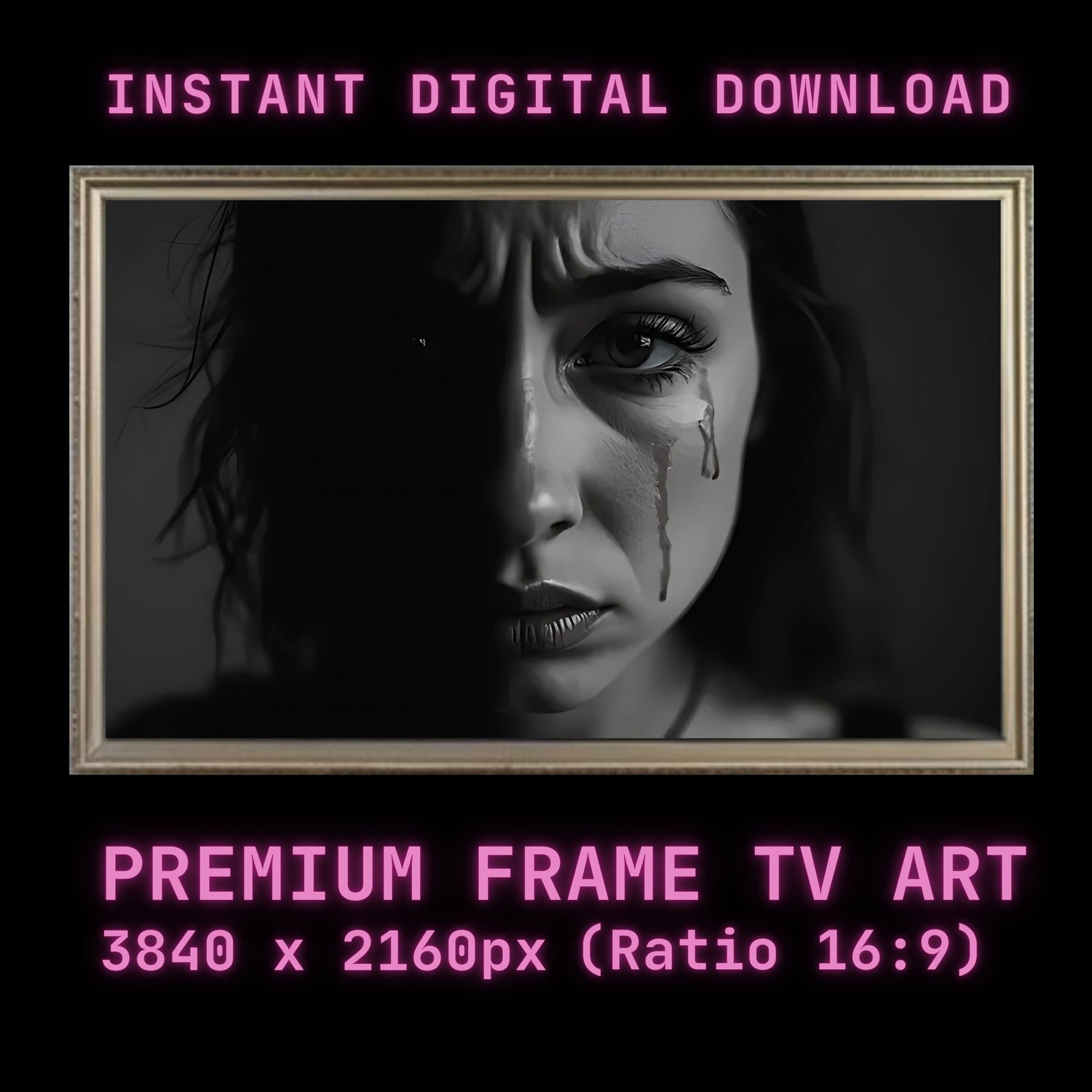 Emotional Modern Frame TV Art, Digital Painting Instant Download Somber Duality Digital Art – Half-Shaded Crying Woman Printable art