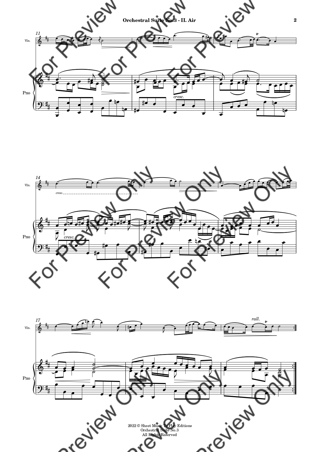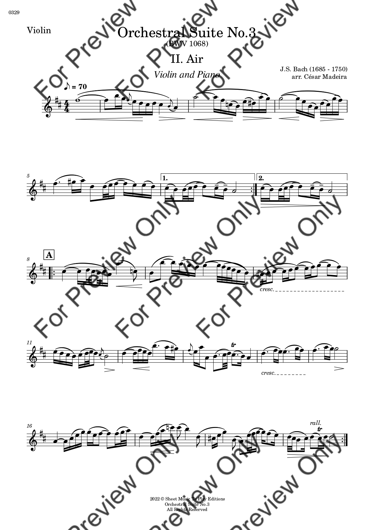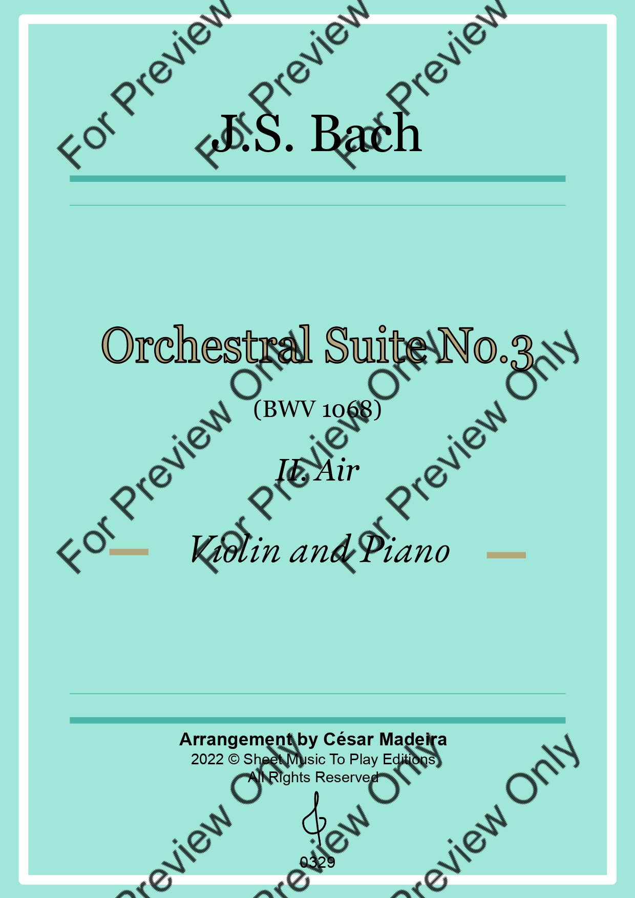 Air on G String by Johann Sebastian Bach. Arrangement for Violin and Piano. With Full Score and Individual Parts. Have fun!