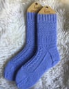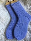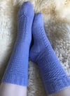 The pattern is available in 3 sizes: small (with a cast on of 56 stitches), medium (with a cast on of 64 stitches) and large (with a cast on of 72 stitches). Foot length can be adjusted to taste.