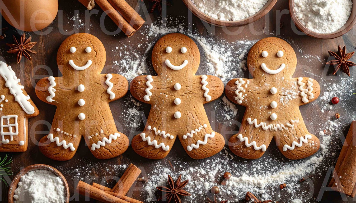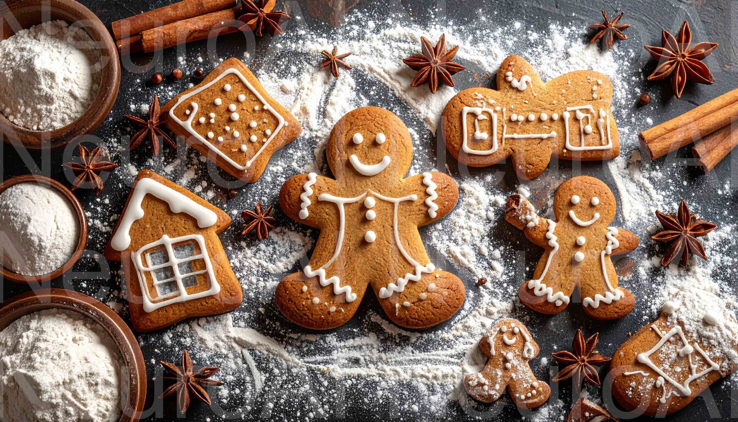 Festive gingerbread cookies with icing and spices for holidays