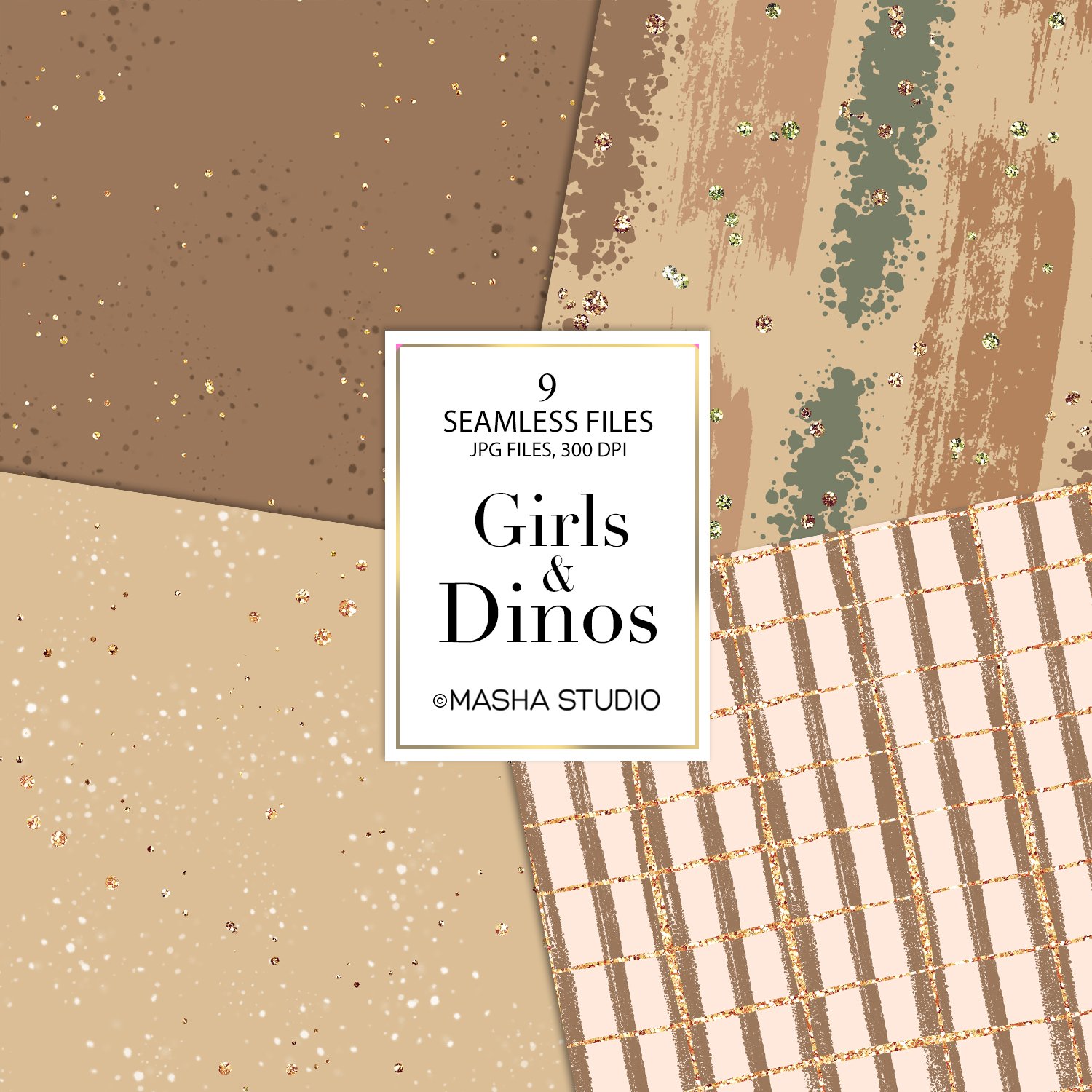 Girls & Dinos Hand Drawn Seamless Digital Papers