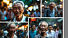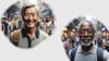 An elderly man wearing a polo shirt walks a crowded footpath in Guangzhou.
