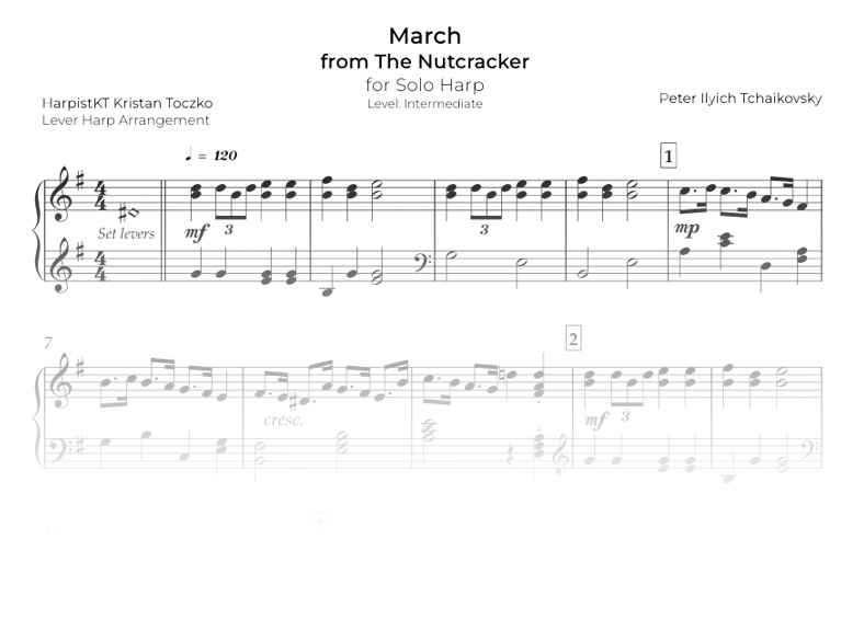 March from "The Nutcracker" - Tchaikovsky (lever harp, late intermediate)