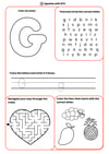 Two sets of English worksheets designed for preschool through first-grade students are available. The first set follows the ABC journey under the theme of "Food." The second set includes puzzle cards featuring over 75 new words, categorized under themes such as food, animals, and everyday objects.