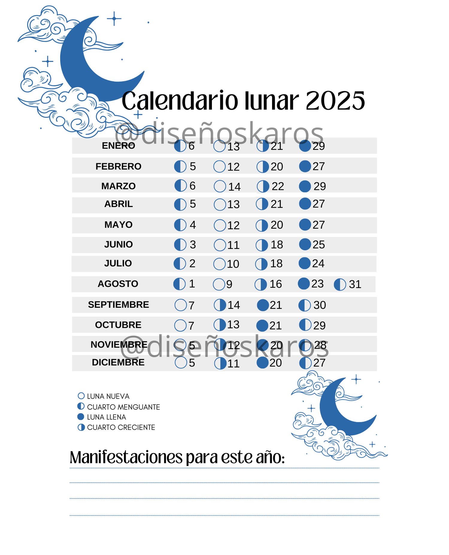 Organiza tu año con nuestra Agenda Lunar, contiene: