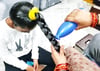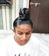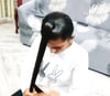 Oiling+Gel applying heavily and Sleek tight bun hairstyles by friend
