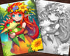 Forest Fairy & Baby Flower Dragon Fantasy Anime Coloring Page Book, Adults + kids Instant Download - Grayscale Coloring Page, Printable PDF