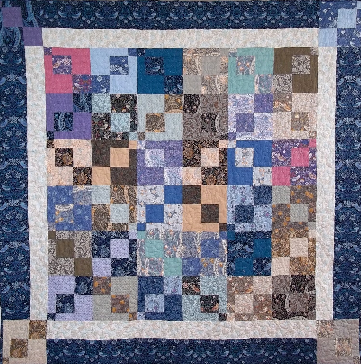 Do you have a lovely layer cake languishing in your stash simply because you don't know what to do with it? Wonder no more; Cakemix is a fun (and very easy) project that uses just one layer cake and some coordiinating fabric for borders. It measures 64" square, making it a great size to cuddle up in. No precuts in your stash? Cut ten-inch squares from your stash.