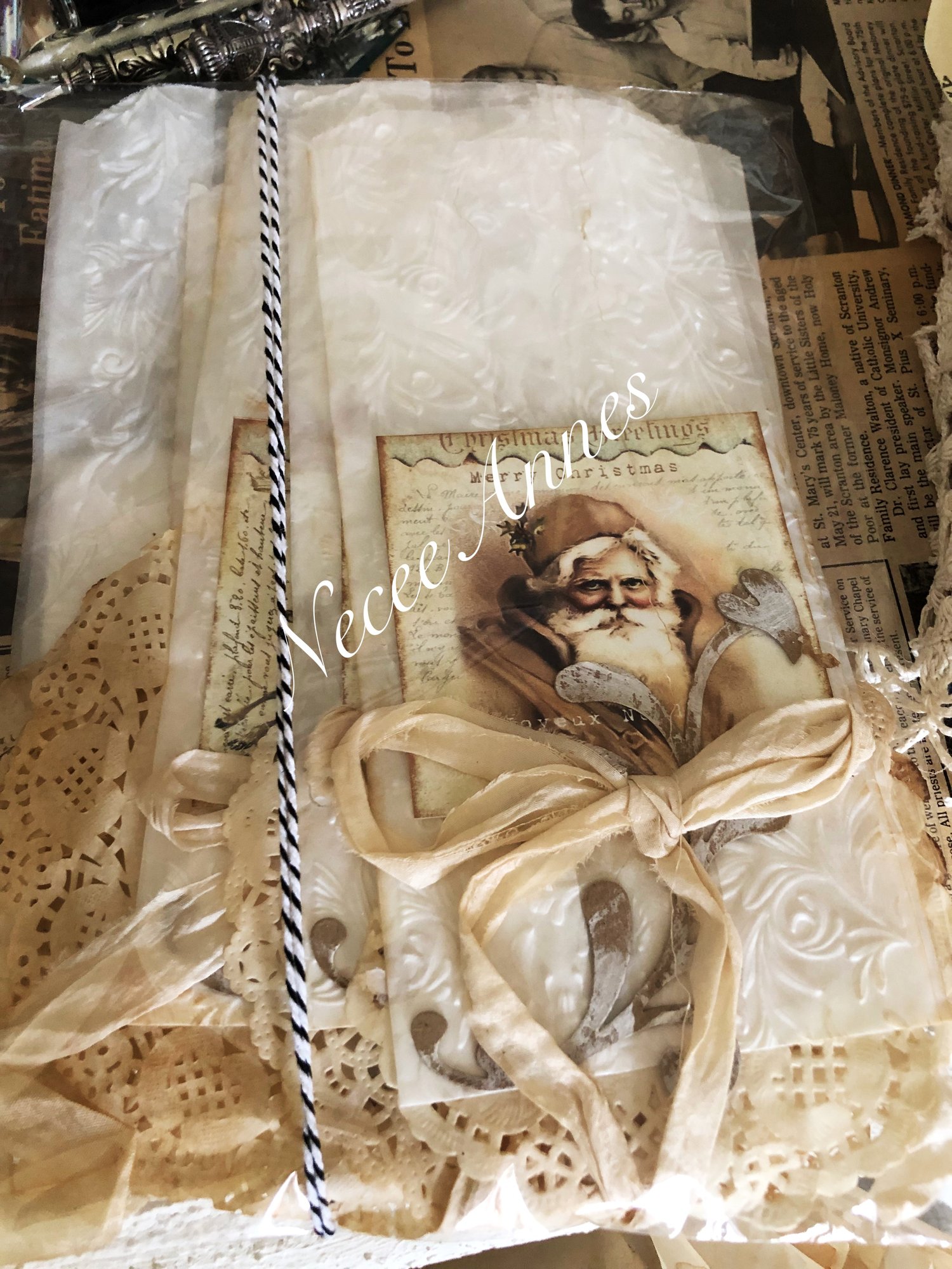 🎄Vintage Embossed Holiday Father Christmas Bags “6” bags