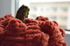 This pattern uses chenille yarn and Tunisian crochet hooks. You will need two colors of yarn and stuffing.