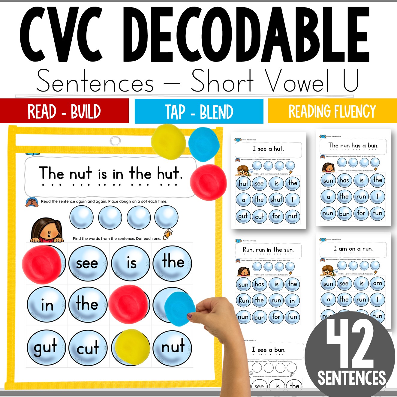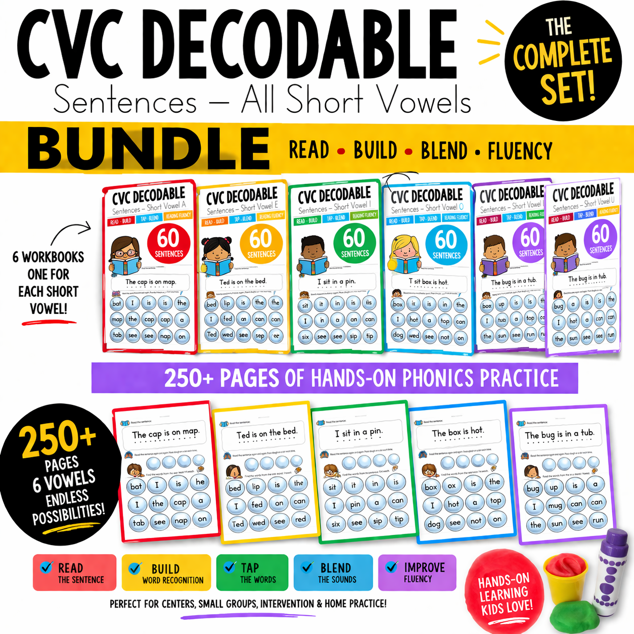 250+ pages of hands-on CVC decodable sentence practice across ALL short vowels.