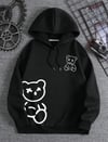 X-Eyes Teddy Streetwear Hoodie – Minimalist Black Graphic Unisex Pullover
