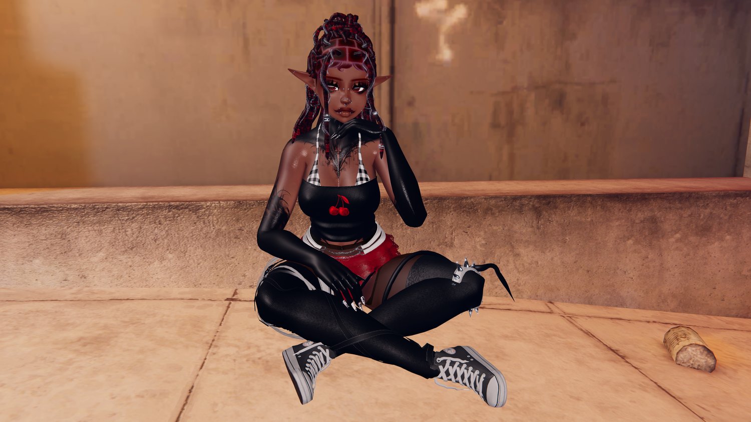 Textures Swap - Physbones - Nose Boop - Head Pat - MMD face sync - Arm Sleeves - Arm sleeve - Arm Spikes - Bandage - Belts - Belly Piercing - Bloomers - Boots - Collar - Corset - Cuffs - Destiny's Straight Locs Jewels - Earrings - Face Piercings - Flower - Gloves - Harness - Hoodie - Horns Chain - Leg Spike - Leg String - Long Hair - Mouth Chain - Panties - Rei's Half-up Locs - Rei's Half-up Locs Jewels - Sami's Hair bun - Sami's Hair bun Jewels - Shaggy Hair - Skirt - Skirt Velvet - Strap Velvet - top xig