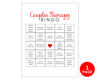Couples Therapy Bingo, Couples Bingo, Couples Game, Mental Health Bingo, Printable Bingo, Date Night Game, Therapy Game, Marriage Counseling