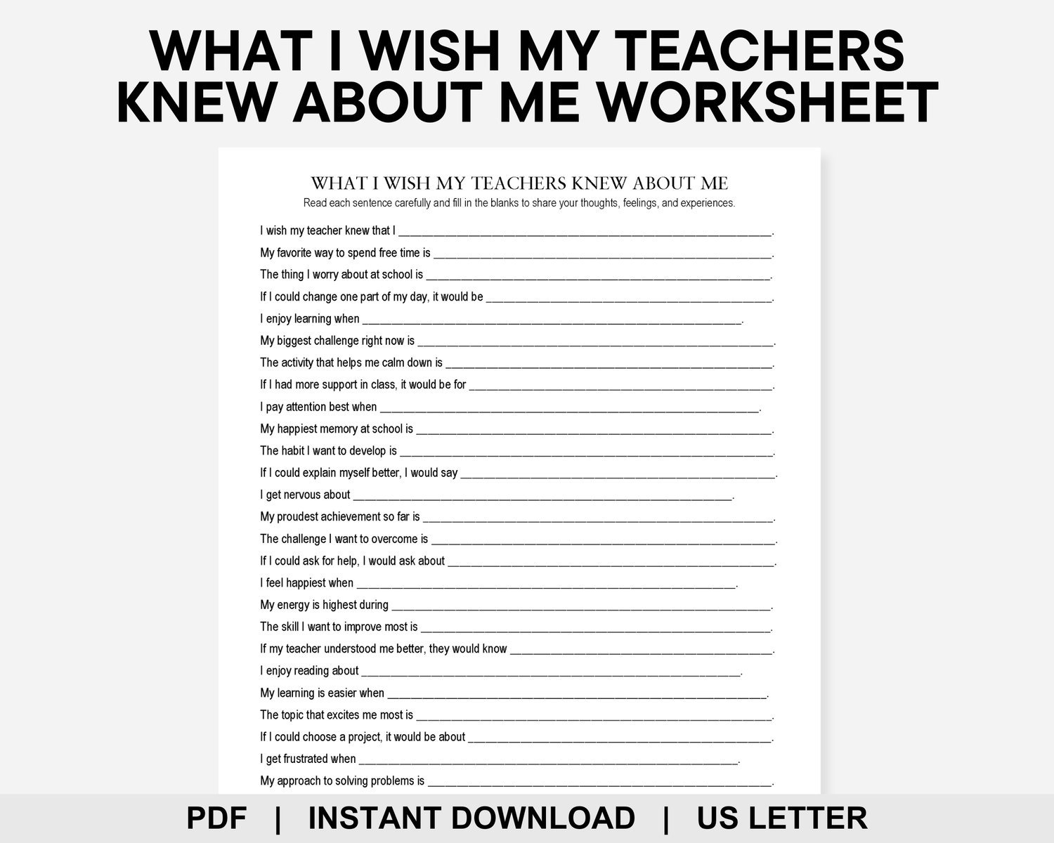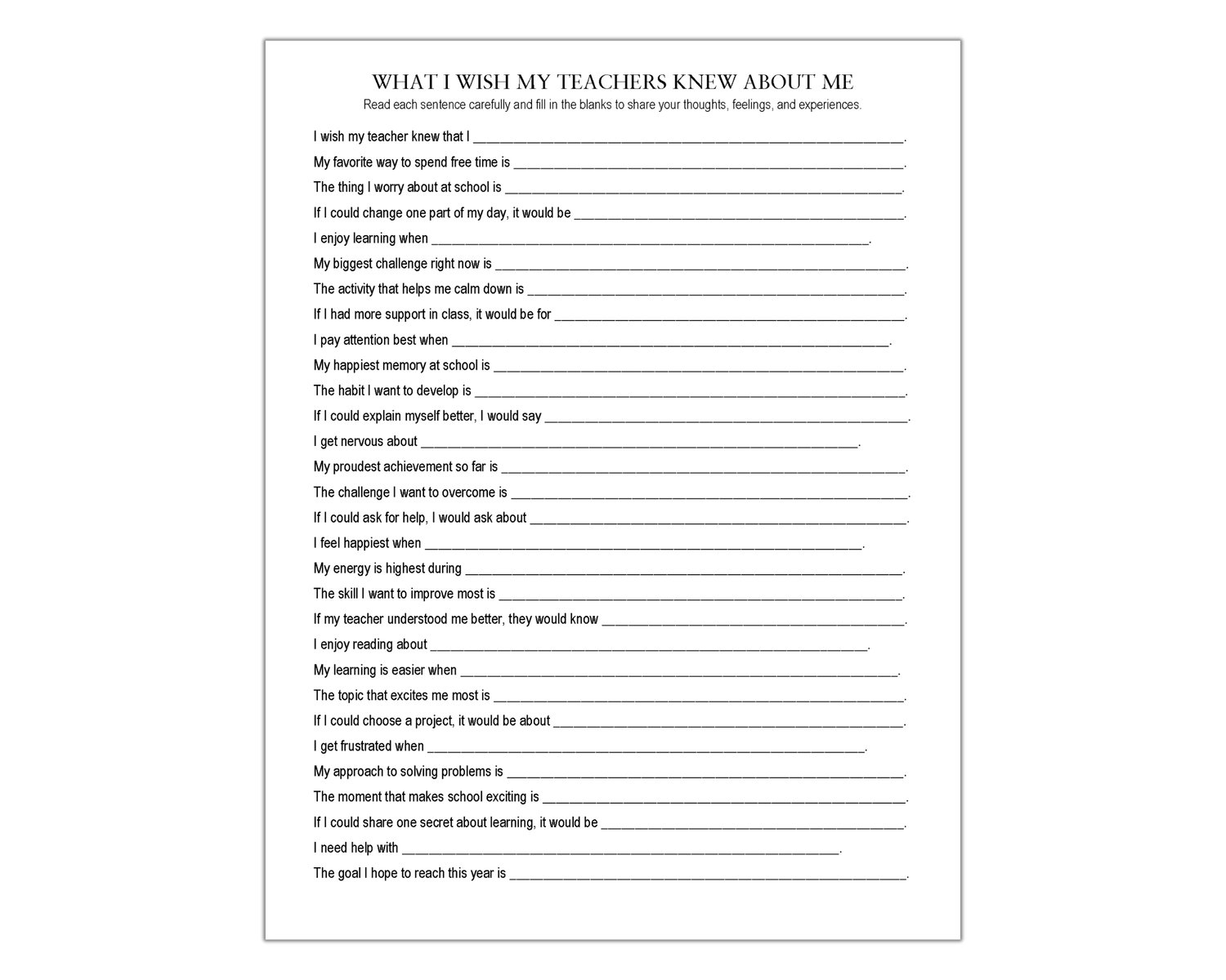 What I Wish My Teachers Knew About Me Worksheet, Get To Know Me, All About Me, Back to School, Icebreaker Game, Conversation Starters