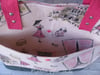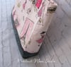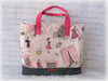 I made this tote in a Paris print in a light cotton canvas fabric. The tote has some really nice features such as a large pocket on the back of the bag with an added Kam snap closure. This back pocket is large enough to place a folder or theme notebook or Composition book into. Inside the bag I added the cell phone pocket below the zipper pocket. There is a divided slip pokcet inside too. As you can see this bag closes with 2 magnetic snaps, which allow this bag to open up nice and wide, yet snap closed to be secure.