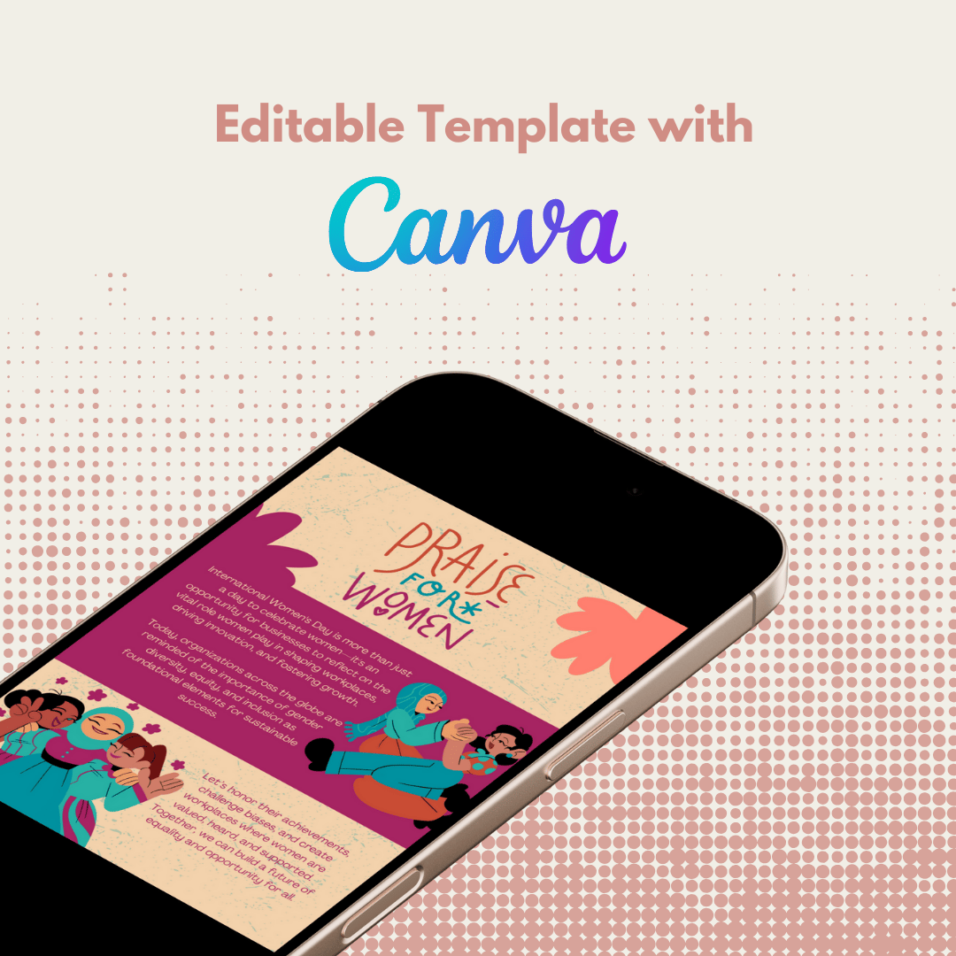 Celebrate International Women's Day with the "Cute Retro Praise For Women" Canva template!