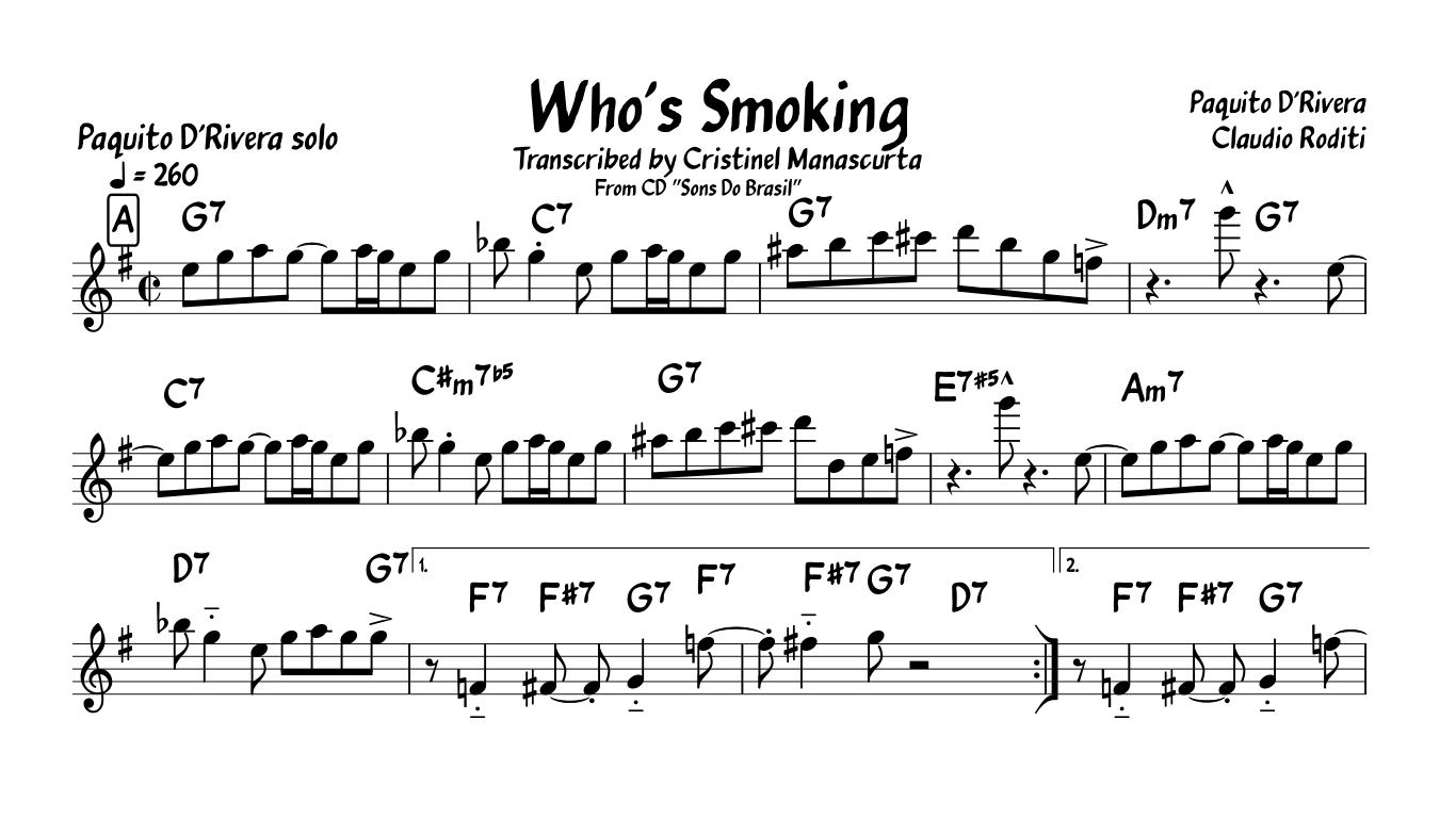 Paquito D'Rivera - Who's Smoking, alto sax (take 1)