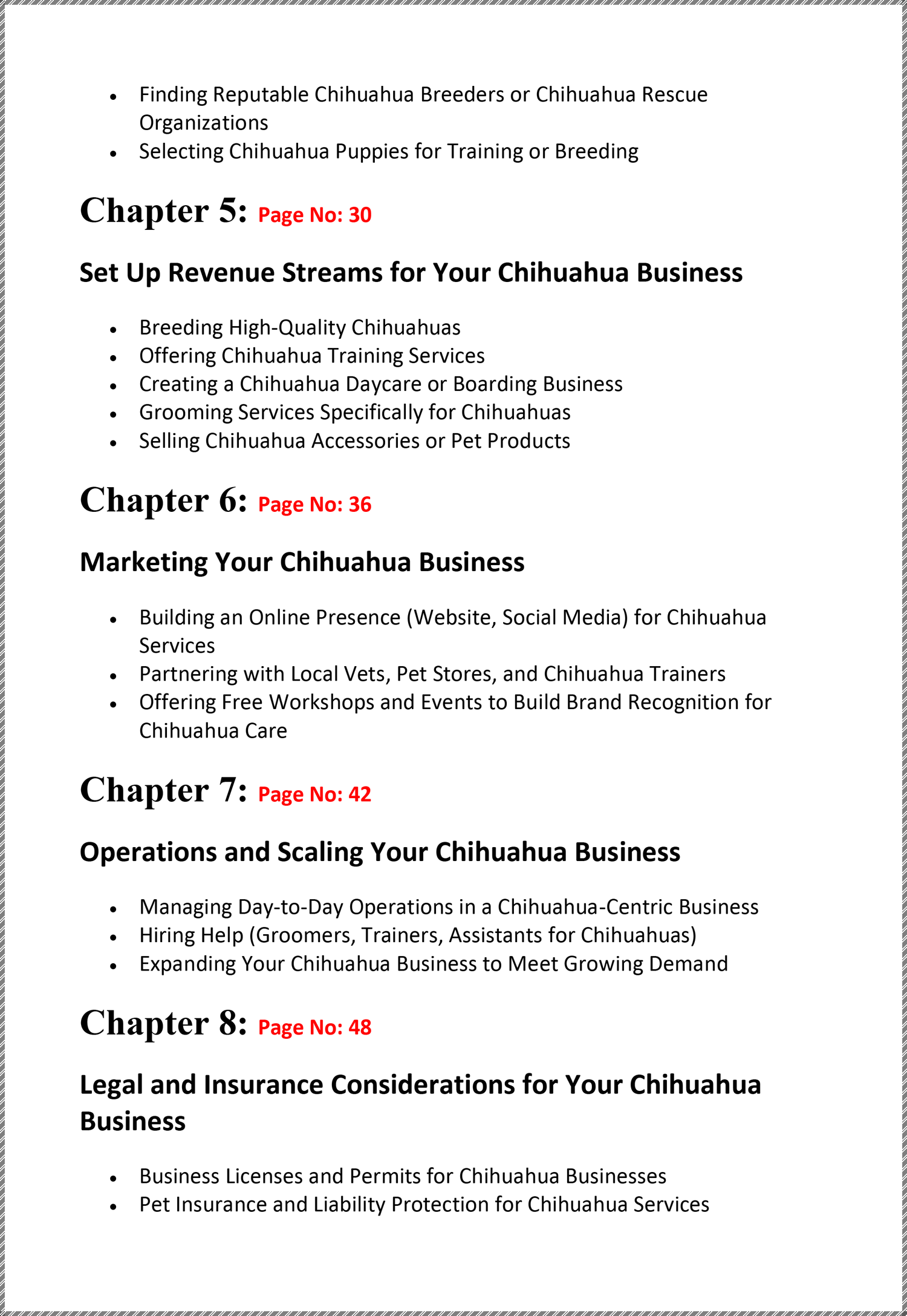 - Find Your Niche and Own It: Pinpoint the ideal Chihuahua business model—whether breeding, training, grooming, or daycare—to stand out in the market.