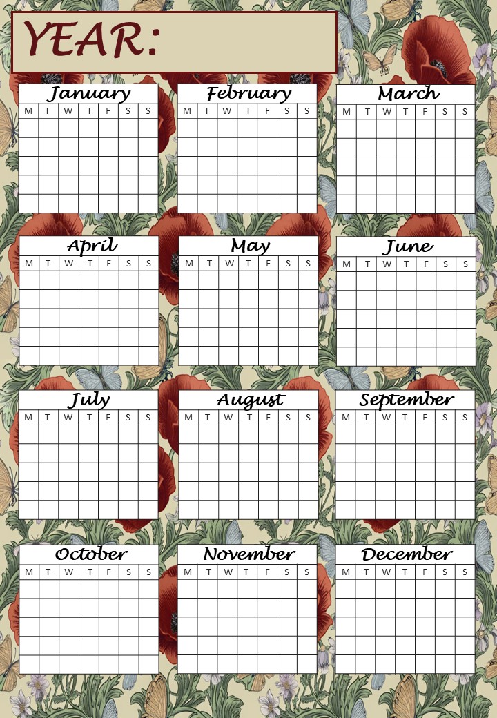 Unleash your creativity with this enchanting William Morris Style Flowers and Butterflies Digital Kit, a versatile collection designed to bring a touch of elegance and whimsy to your projects! This bundle features 6 seamless digital papers, 6 undated at-a-glance calendars, and 12 undated calendar bookmarks, all in a cohesive floral and butterfly theme that’s perfect for crafting, digital scrapbooking, planning, and more.