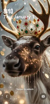 Step into regal winter magic with this ultra-luxurious 8K wallpaper featuring a majestic reindeer crowned in gold, emeralds, and ruby-red jewels. Snow dusts its fur as golden coins float through the air, symbolizing prosperity, elevation, and seasonal abundance.