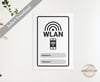 Wlan Poster Passwort und Netzwerk eintragen, Sofortdownload zum sofortigen Ausdrucken. Wifi-Passwort Poster s/w