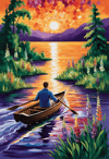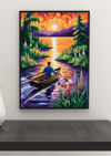 The vibrant and adventurous imagery captures a profound message of journey through nature. Surrounded by water and flourishing evergreens all wrapped by the golden of the setting sun. With his back facing towards us, the man is embarking on a journey, rowing, gracing through the lavender-coated beauty of the water seemingly chasing a path, his solitary quest. This is a portrayal of introspection and self-expression, a sightful odyssey towards the understanding of one’s heart and soul.
