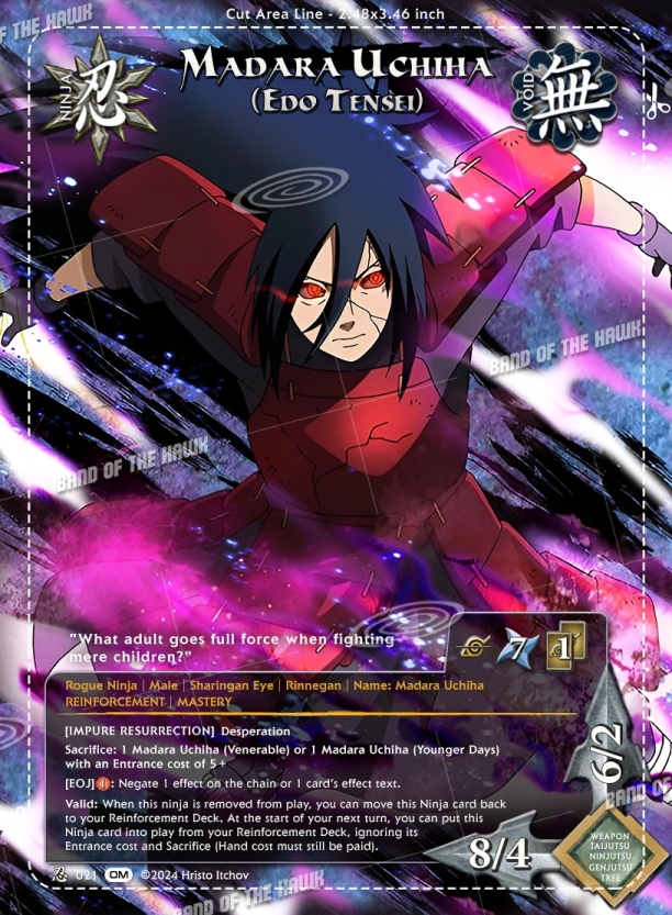 n021 - Madara Uchiha (Edo Tensei) Promo Ninja card from our Obito & Madara card set for Naruto CCG.