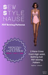Two Piece Cross Front Halter Top High Waist Bathing Suit PDF Sewing Pattern