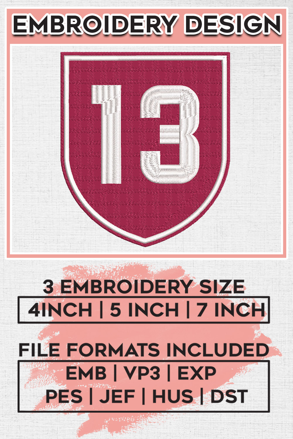 Colgate Raiders Thirteen Football Team Logo Embroidery Designs, NCAA Colgate Raiders Machine Embroidery Files, NCAA Logo embroidery designs, NCAA Raiders Logo, Digital Download