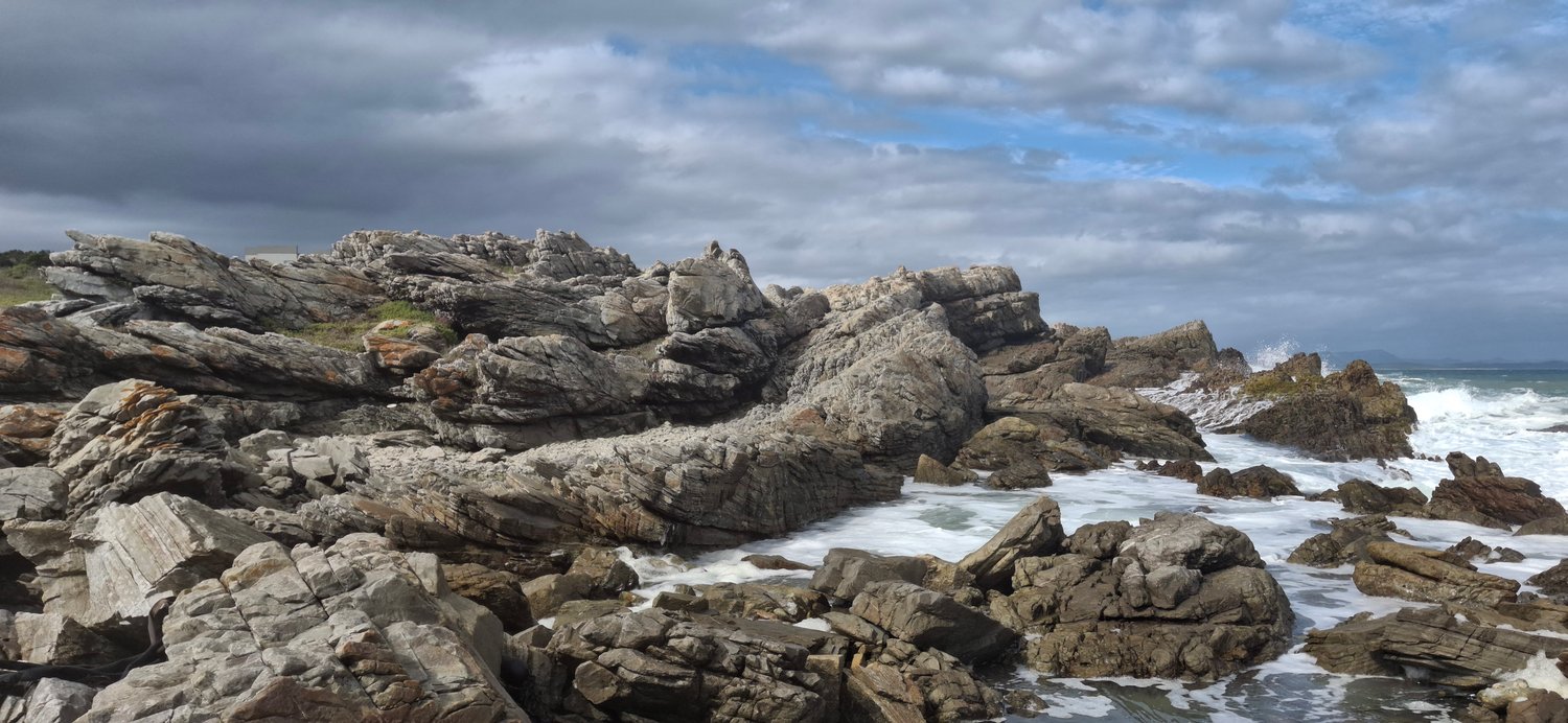 Striking image of afternoon sun against coastal rock formations, Kleinbaai, Western Cape