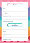 - Sections for school information, emergency contacts, and weekly/monthly goals