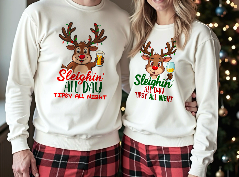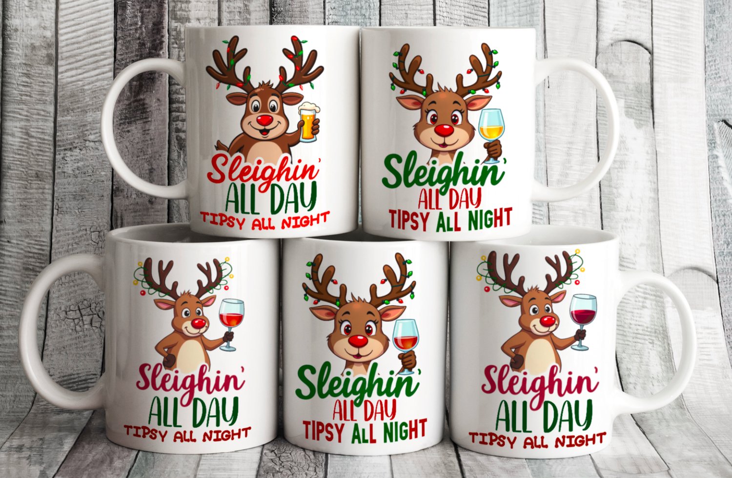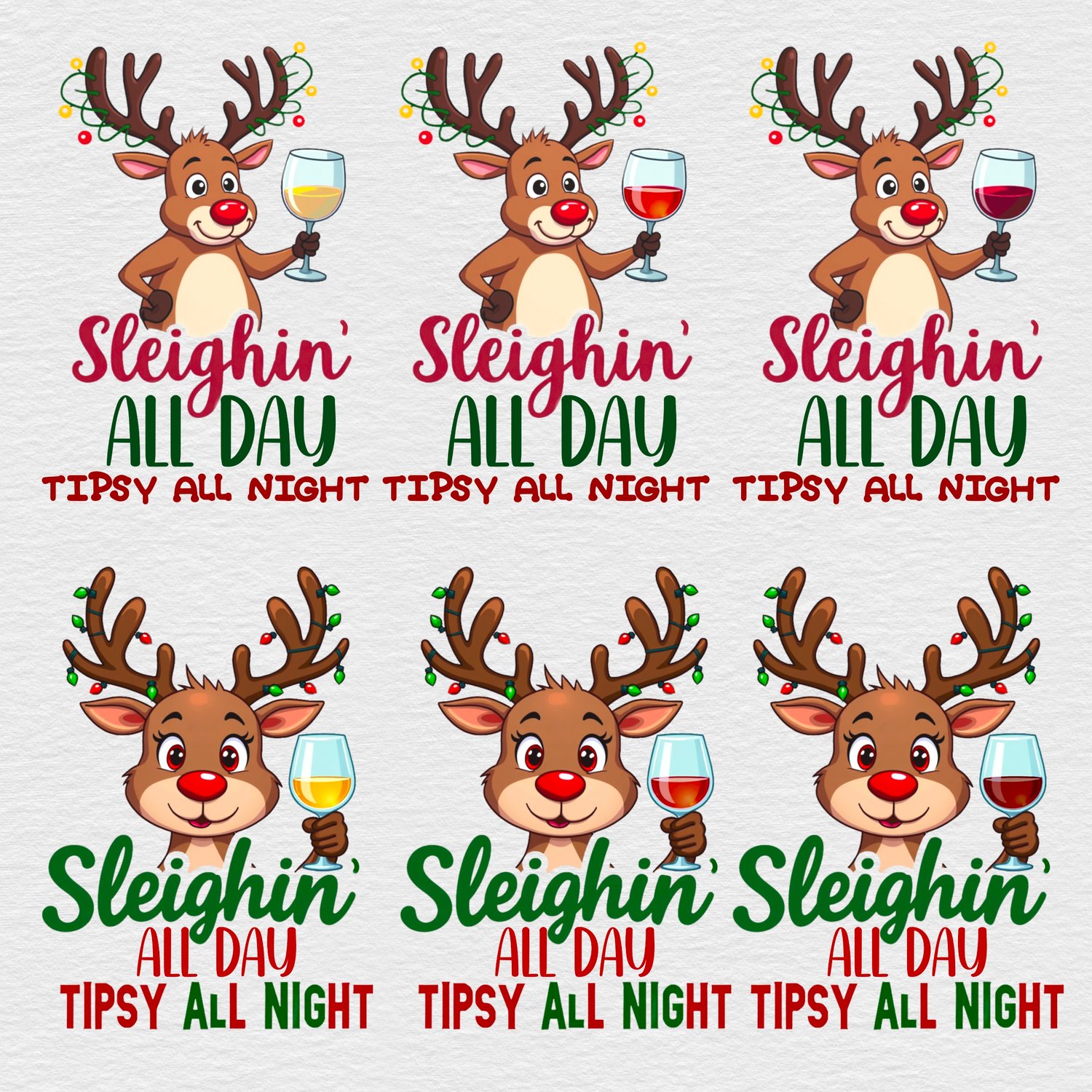 “sleighin’ all day…” humour. 7 PNGs featuring red, white and rose wine, and beer.