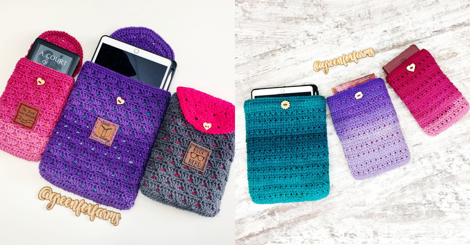 ✦ Using my popular Hopscotch Stitch, this book sleeve pattern is a true favorite! Button loop closure and a liner padding to secure your babies, and 3 sizes to protect paperbacks up to iPads!