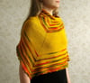 Indian summer is a triangular shawl with stripes. It is started from the neck and worked downwards. The shawl was designed to show off a very variegated yarn, paired with a solid color yarn. The stripes are narrow so that the multicolored yarn would look as attractive as possible, without major pooling or other undesired effects (pooling can be desired, too, but this shawl is not designed for that purpose)