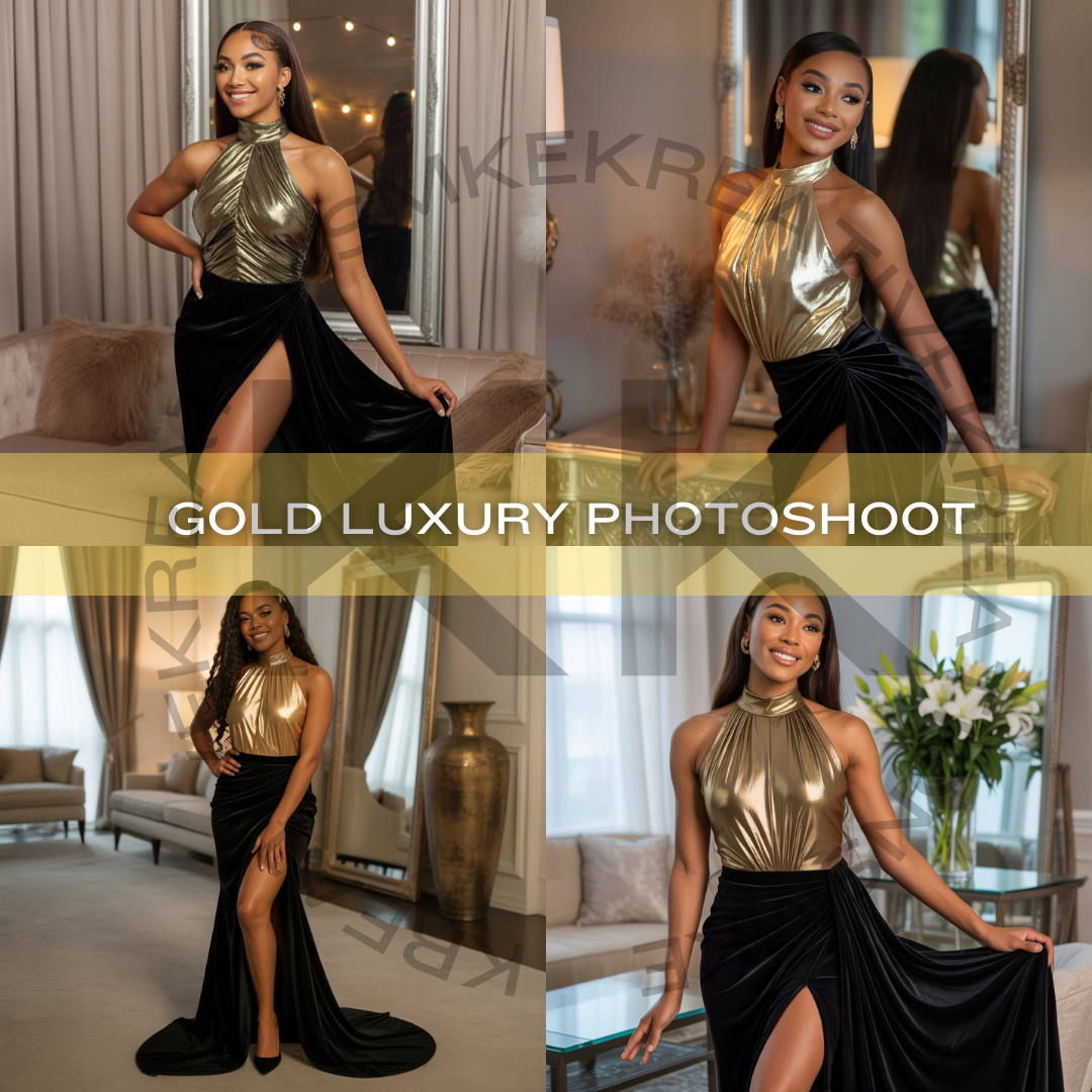 Gold Luxe Shoot, No camera, or extra fee. Use the face swap tool and start posting.