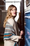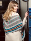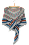 Taival is a three-color, shallow triangle shawl made of garter stitch and stripes. Take it along the road as a traveling companion for both knitting on-the-go or, when finished, draped over your shoulders for extra warmth. (There's nothing stopping you from knitting it home in front of the telly, though.)