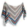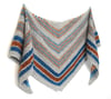 Straightforward garter stitch is interspersed with sections of narrow two-row stripes in alternating colors. This shawl is a compelling and fast-paced knit with absolutely no purl stitches… until the border.
