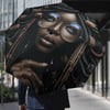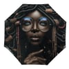 Shield yourself from the elements in unmatched style with the "Visionary Artist" Octagonal Umbrella. This unique umbrella features an eye-catching octagonal design, showcasing a stunning portrait of a woman adorned with intricate hair decorations and striking, large round glasses that reflect a mesmerizing blend of colors. Her expression is contemplative, inviting you to see the world through an artist's eyes, even on the dreariest days.