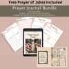 This digital product is a Prayer Journal Bundle with FREE Jabez Prayer in Shabby Chic style backgrounds. A comprehensive set of tools designed to enhance your spiritual journey and deepen your connection with God. This all-in-one package includes various sections to support your prayer life, scripture study, and personal growth.