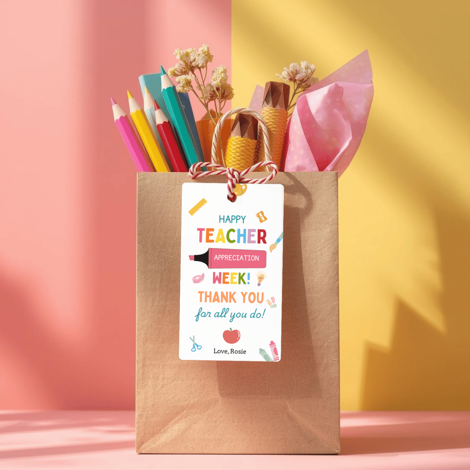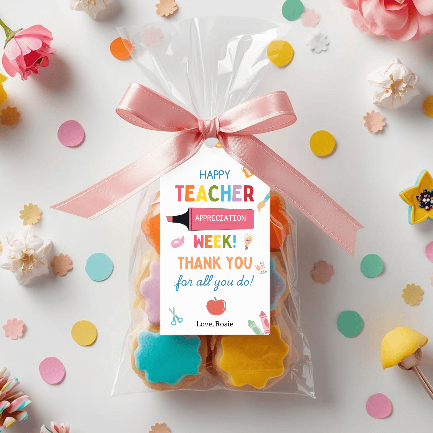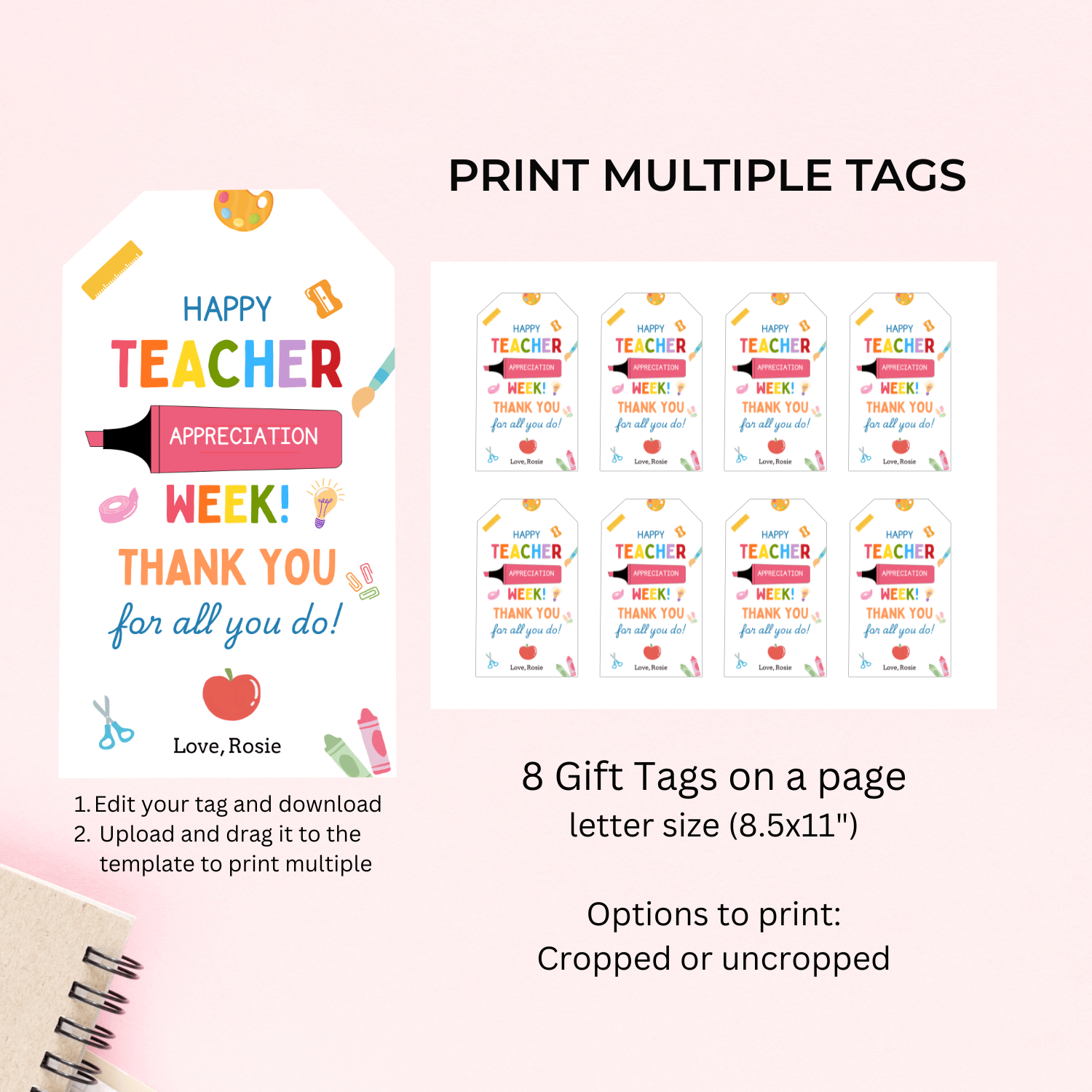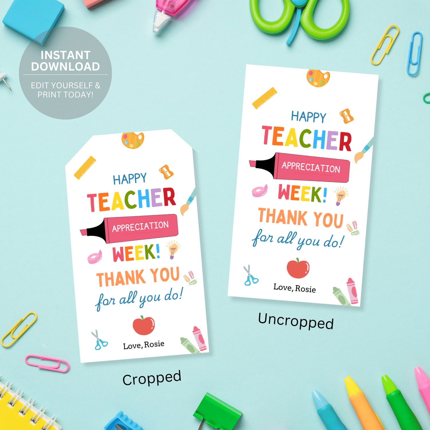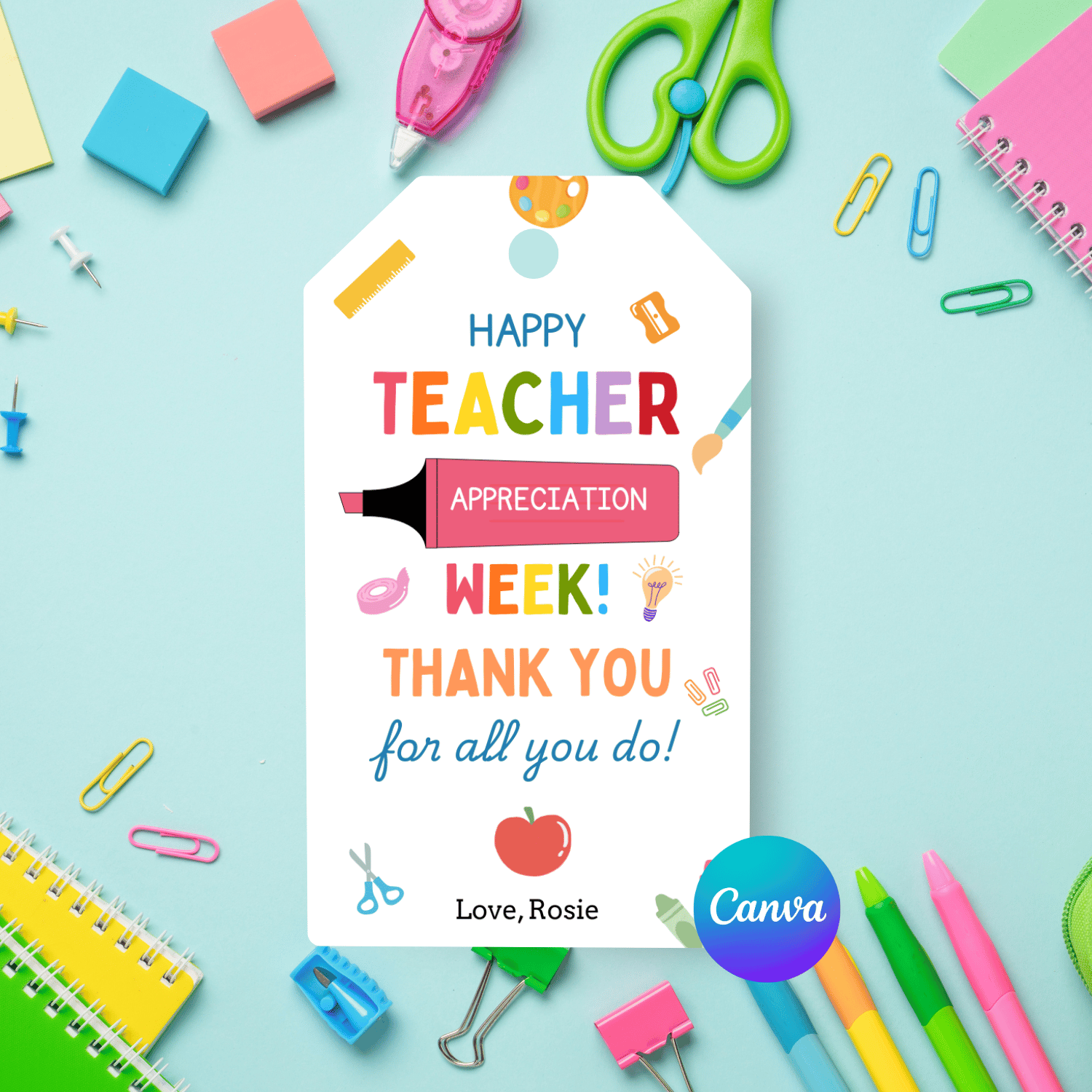 TCHR005 Printable Teacher Appreciation Tags | Happy Teacher Appreciation Week | Colorful School Supplies Teacher Gift Tag | Canva Editable | Instant Download