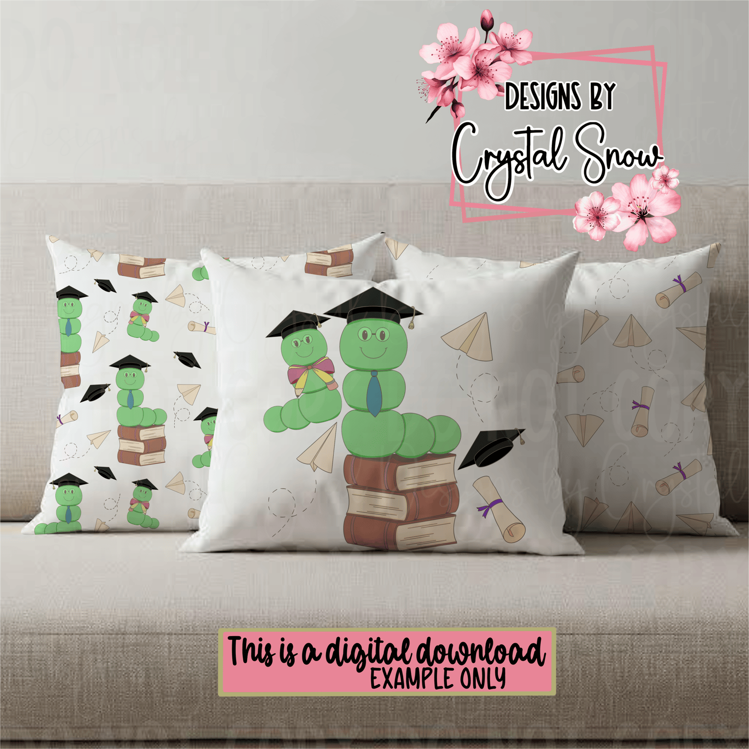Graduation Bookworm Seamless Pattern Bundle | Cute Worms, Paper Airplanes & Diplomas | 4 Matching Digital Backgrounds